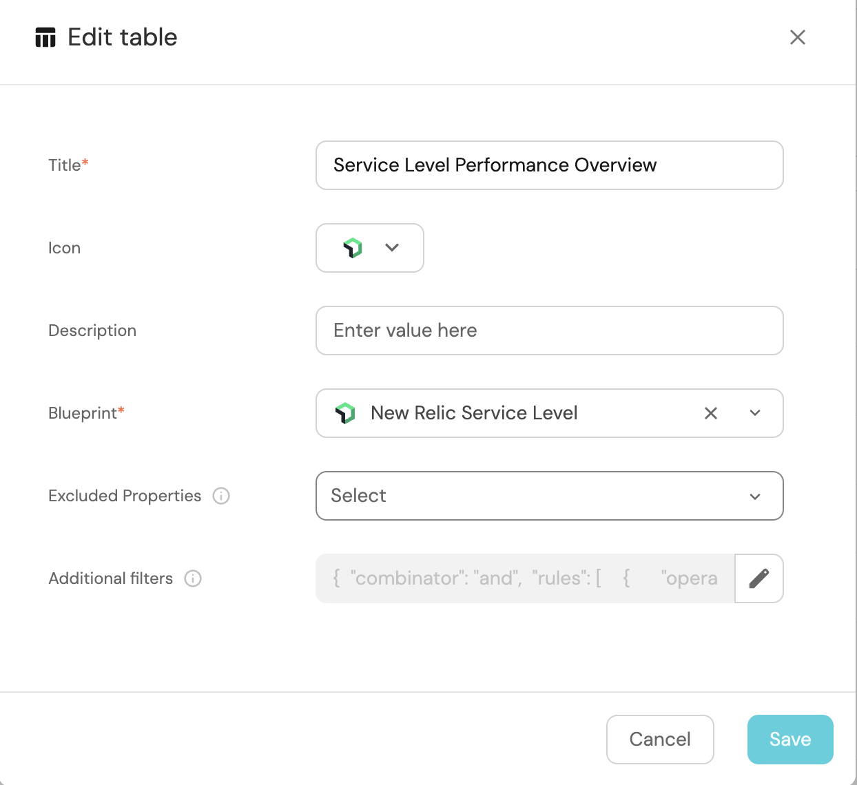 Choose the New Relic Service Level blueprint.