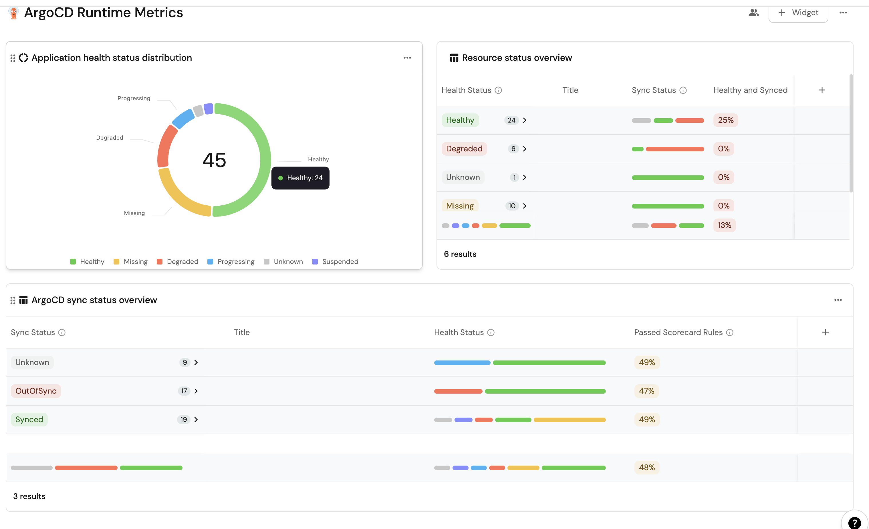 These widgets will give you a comprehensive view of your ArgoCD runtime, making it easy to monitor application health, sync status, and deployment progress across your cluster.